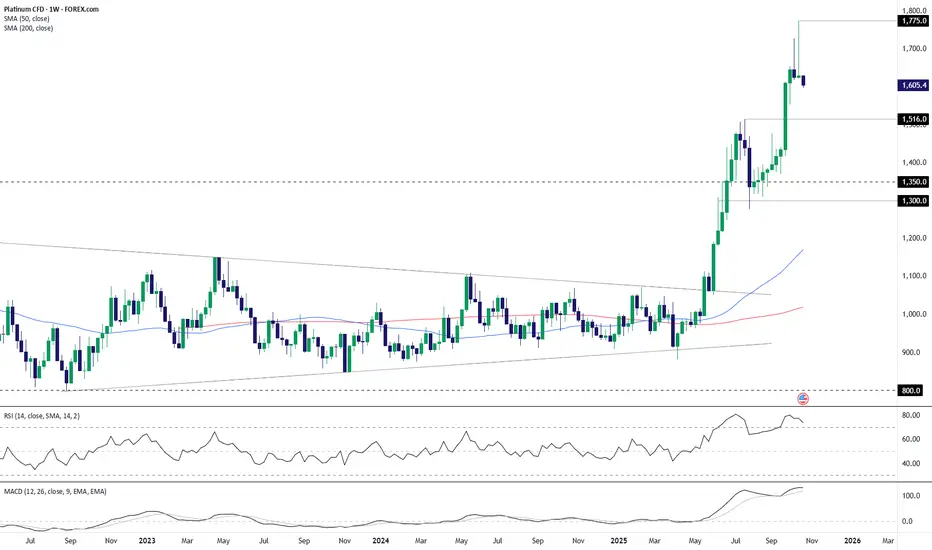 Platinum’s breakneck rally since June looks at risk of reversing, with the last two weekly candles delivering notable topping patterns. A shooting star from above $1,700 was followed by an enormous bearish pin, doubling down on the message. With momentum indicators like RSI (14) and MACD rolling over but still in overbought territory, selling into rallies is preferred near term, especially if we see another push above $1,650 where bears were active in each of the past three weeks.