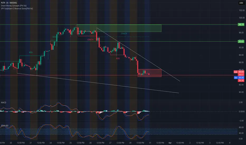 * Trend: Bearish structure confirmed. PLTR has broken previous bullish BOS (Break of Structure) and is forming lower highs and lower lows.