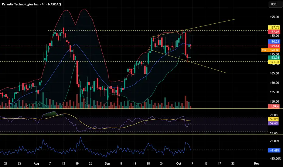 as you see on the chart palantir is ranging in a expanding triangle pattern wich is not bearish or bullish.