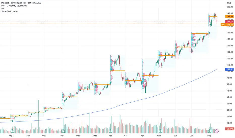 Palantir’s recent price action has seen steady gains, climbing from the mid-$160s to $177.17 in a relatively short period. The stock has shown resilience even during broader market hesitations, validating its strong investor confidence and fundamental backing. The upward trajectory has also been marked by higher intraday highs and closing prices, signaling firm momentum.