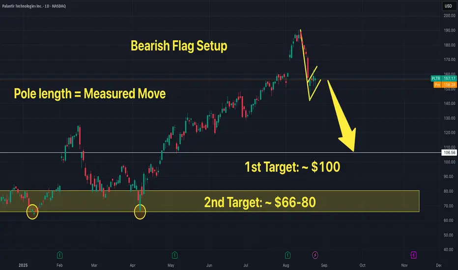 There is a clear bearish flag setting up. Short at the break of flag for a measured move to the sub $100 level. Further selling pressure may bring it down to the support zone of between ~$66 to $80 level.