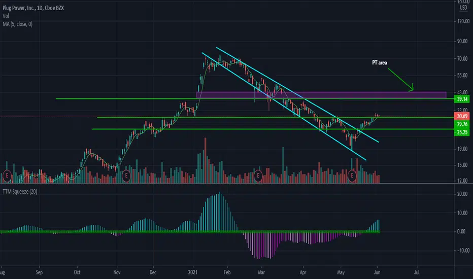 im getting in on a few calls if PLUG remains above the first green line. SL below bottom green line. my area to take some profis is around that 39-43 area.