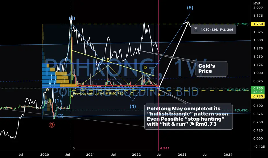 PohKong May completed its “bullish triangle” pattern soon. Even Possible “stop hunting” with “hit & run” @ Rm0.73.