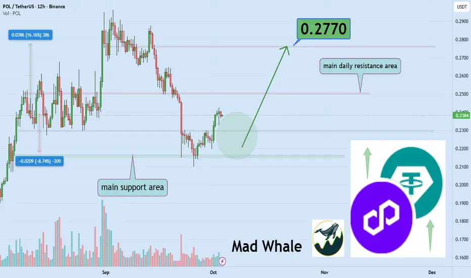 POLUSDT is testing a crucial daily support; holding here could set up a potential 16% rally toward $0.2770.📈