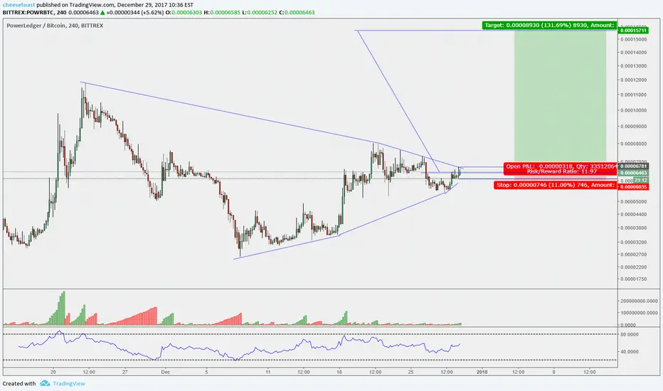 Price starting to squeeze into a small channel of consolidation. Primed for a breakout. Target shown.