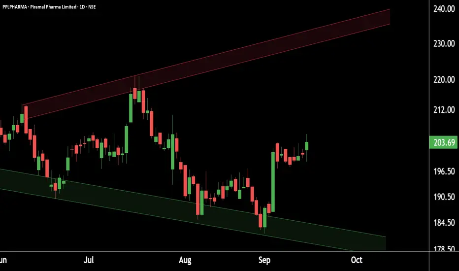 PPLPHARMA is forming a Bow & Tie pattern and has reversed from the support zone, currently sustaining in the ₹195–200 range.