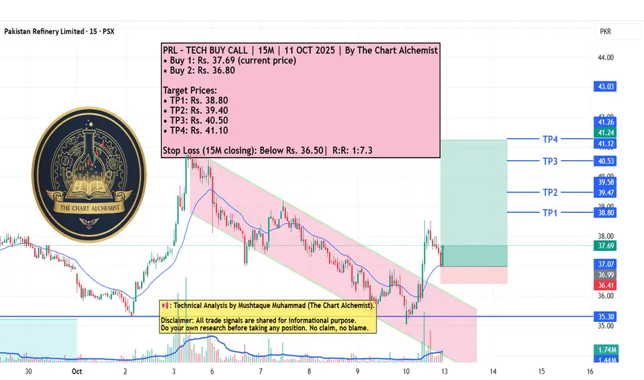 PRL – TECH BUY CALL | 15M | 11 OCT 2025 | By The Chart Alchemist
