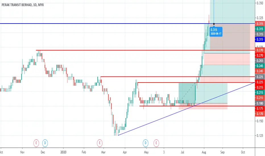 Cut loss after the daily candlestick close or breakout below @ 0.270Trade active