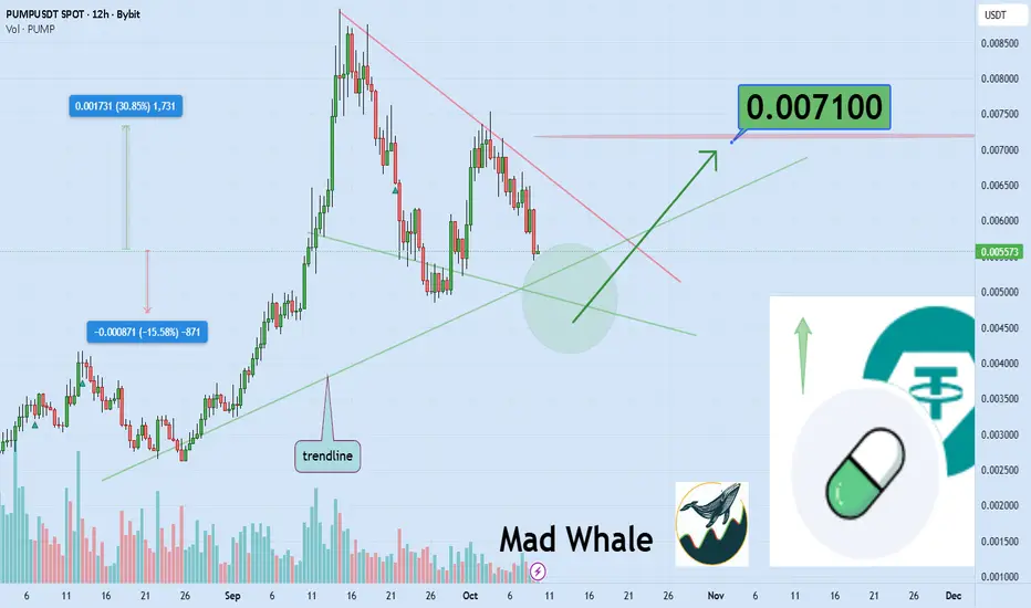 PUMPUSDT is currently holding above key support levels; as long as these zones remain intact, a potential upside of around 30% toward the 0.0071 area could unfold. A clear breakdown below support, however, may shift momentum bearish and invite further downside movement.📈💎