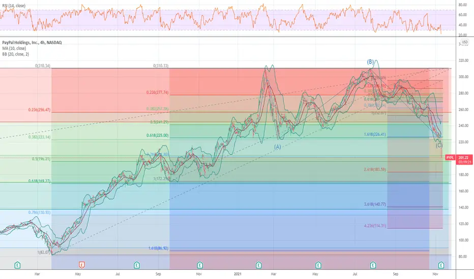 I am net long in pypl in cals march 240 from 229 and now 209 to 205 . we are at the 100 week moving avg and outside the BB BANDS AS THE LOW MARCH 23 2020 LOW .I MAINTAIN THIS IS A WAVE 2 PULLBACK OR WAVE 4 SUPER CYCLE LOW