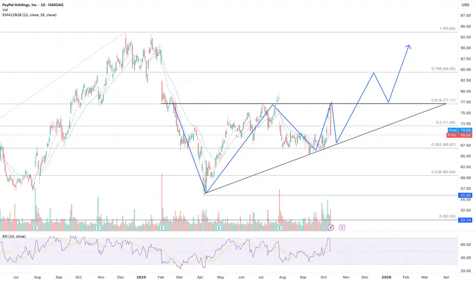 Breakout above 77 it can go above 80 easy. It's consolidating after a long drop the last few years. Still great fundamentals.