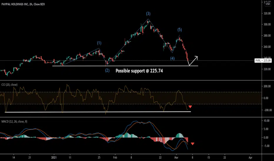With the current market crash, Dropping MACD and getting closer to its CCI Support point, Paypal possibly will drop more.
