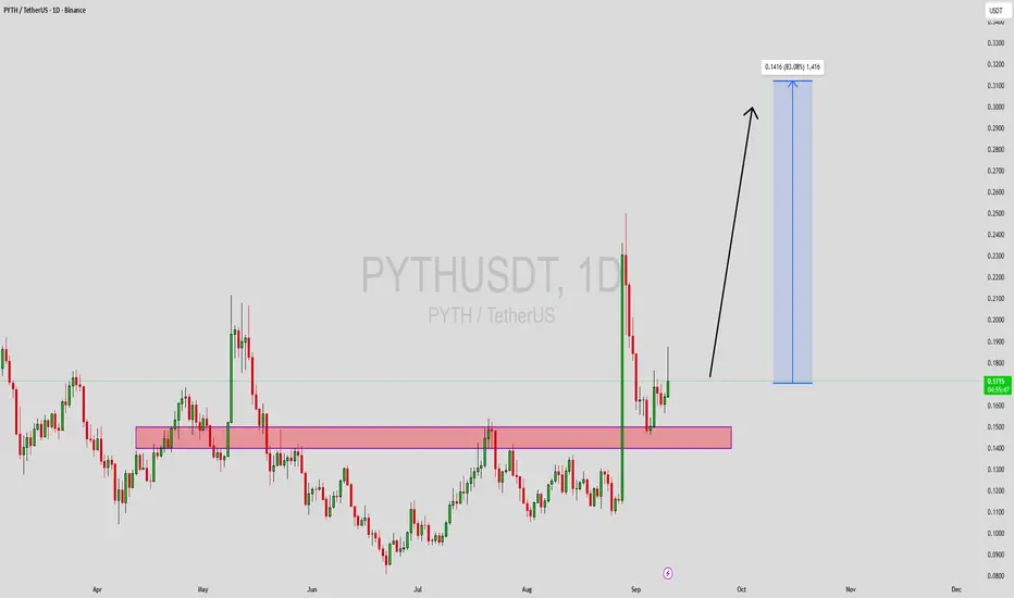 PYTHUSDT is showing a strong technical recovery after successfully retesting a key support zone. The price action indicates growing buying pressure as the coin establishes a solid base for the next bullish move. With good trading volume backing the recent surge, market sentiment is leaning positive, and the setup suggests that PYTH could be preparing for a significant rally. The expected upside potential for this move is around 70% to 80%+, which makes this pair highly attractive for both short-term and swing traders.
