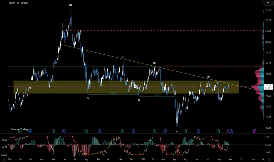 QCOM is tring to find its way on the all time price action and volume area. With the break out of trend , expecting first and strong resistance, liquidation area 177, then 210. * Not for trading advice *