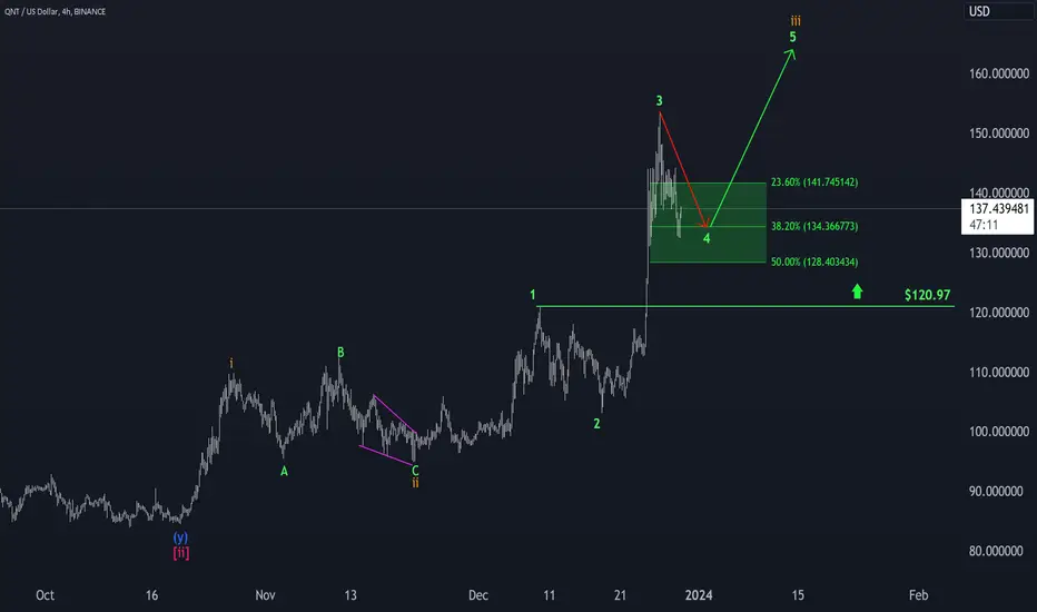 After its impressive rises, Quant's price has retreated a little in the last few days. We now consider green wave 3 to be over and see the price already in wave 4 of the same color. We have also added a green Target Zone between $141.74 and $128.40 for the completion of this wave, in which the price is already trading. Consequently, we expect a near-term reversal and further strong rises to complete the orange-colored wave iii.