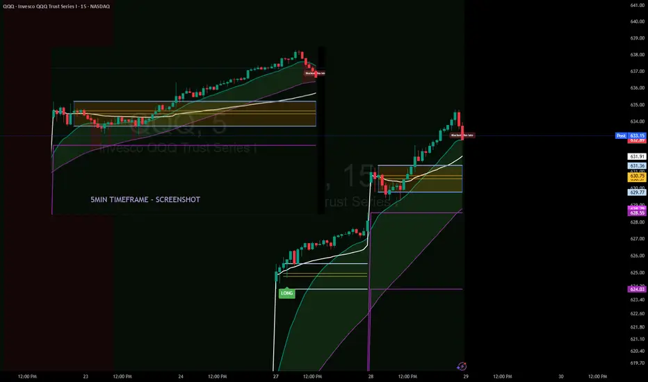 After entering, I made a few additional plays as price began to push above my 0DTE Context Indicator lines. On the 5-minute chart, the candles between 12:05 PM and 12:20 PM played directly into the Golden Pocket — this gave me strong conviction that price was heading for new highs.