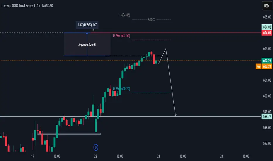 QQQ has the potential to drop to 598.72, with a price target of 600.20. The setup will be invalid at 604.02 if there is no sign of improvement. However, if there is momentum improvement, 604.86 will be the approximate invalidation level.