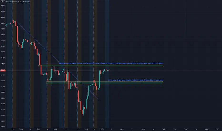 Break below 380 (entry, short), it can see 374-376 (exit)