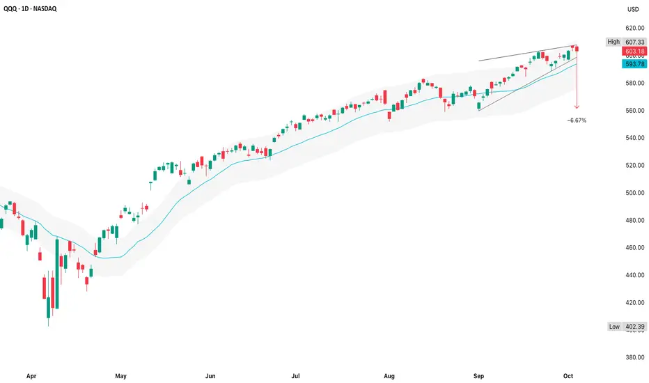 - If QQQ closes below ~$600, that would confirm the rising wedge breakdown & trigger the measured-move target to $570