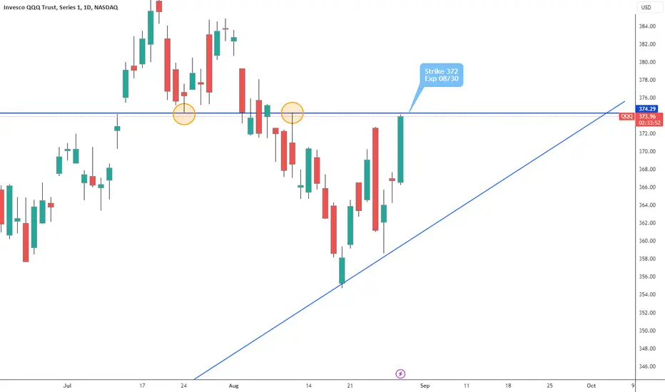 Just bought some puts. Price has previously reacted aggressively at 374 level and it looks overbought. I hope it opens tomorrow with a gap down.
