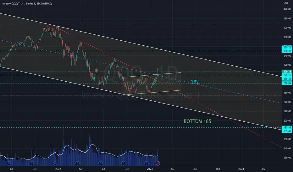 We could have a correction on the QQQ until 185 after that a renounced and a retest of 185 to make a bottom of 160 for end of 2023 or 2024.