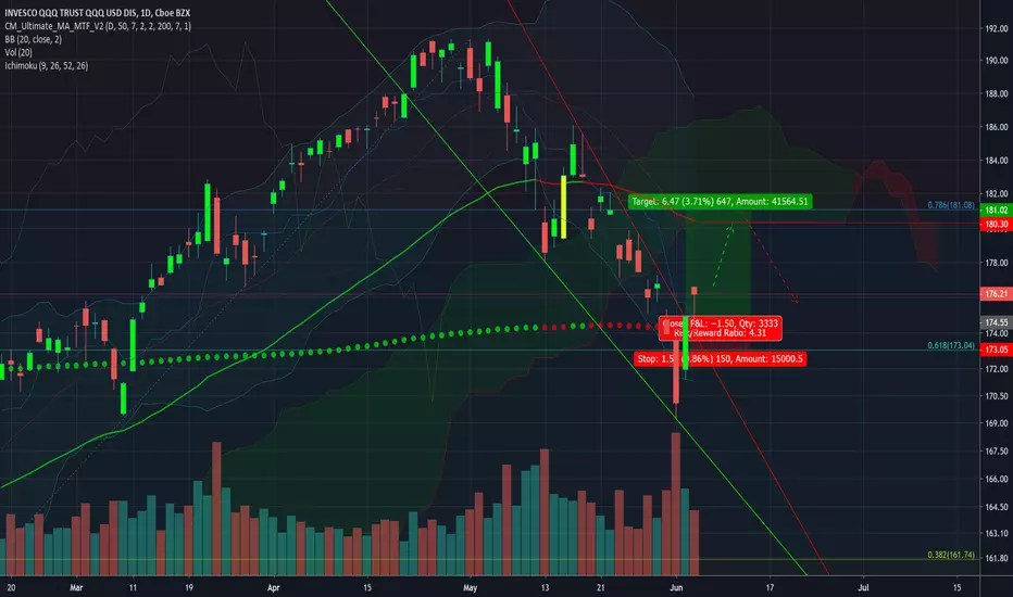 Looking to exit #NASDAQ long around cloud resistance $TQQQ $QQQ