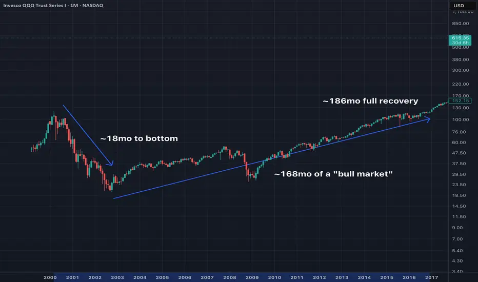Here's a study of how long the 2000's dotcom crash took to play out. I think this is a useful study when considering how the '21 DeFi crash may play out
