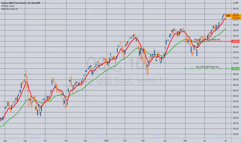 Comments: With a mere .34 of extrinsic left in the July 23rd 305, rolling out to the 16 delta in the expiry nearest 45 days until expiry. Total credits collected of 5.32 (See Post Below) + 2.31 or 7.63 versus a short put value for the 330 of 2.69, so I've locked in gains of 7.63 - 2.69 = 4.94 ($494) so far.