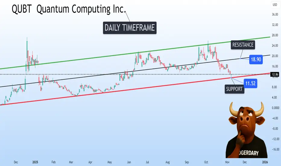 QUBT is sitting right on the edge of its ascending channel on the daily timeframe.