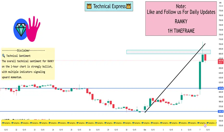 The overall technical sentiment for RAMKY on the 1-hour chart is strongly bullish, with multiple indicators signaling upward momentum. However, the high RSI suggests that the stock may be approaching overbought levels, indicating a potential for short-term consolidation or pullback.