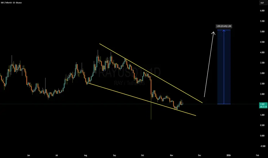 From a strategic viewpoint, a clean breakout above resistance and confirmation with volume would be the trigger for me. If RAY closes above resistance and holds it, the next move could carry upside momentum. The reward potential looks favorable given the combination of structural base plus thematic strength in the Solana-DeFi space. Risk control is essential, so placing a stop just below the recent consolidation low or major support would allow a defined risk-to-reward.
