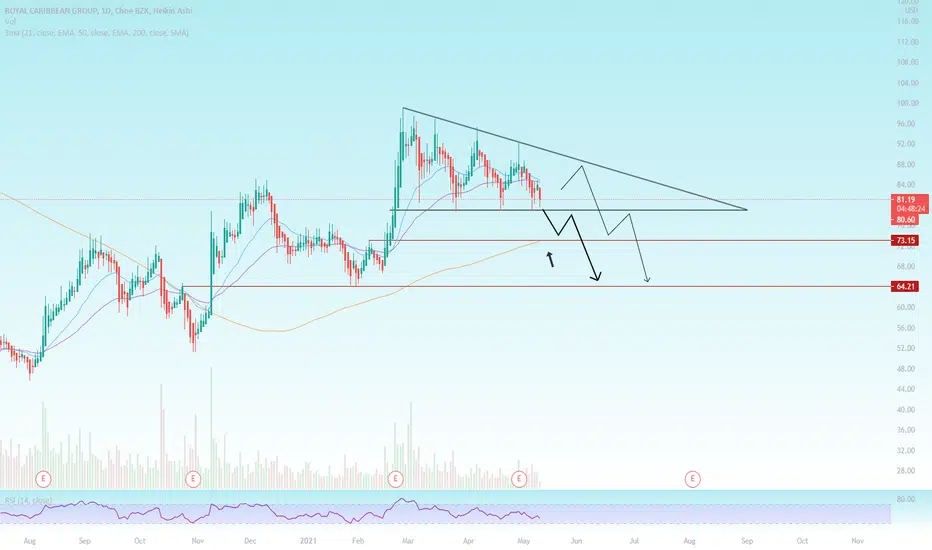 This is textbook put play, we have a descending triangle formed on the daily and its just barely being held by this ~79 support level