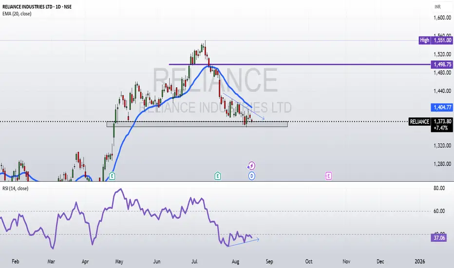 there is bullish divergence you see on the chart with respect to RSI. and EMA20 acts a resistance/support in the daily timeframe.