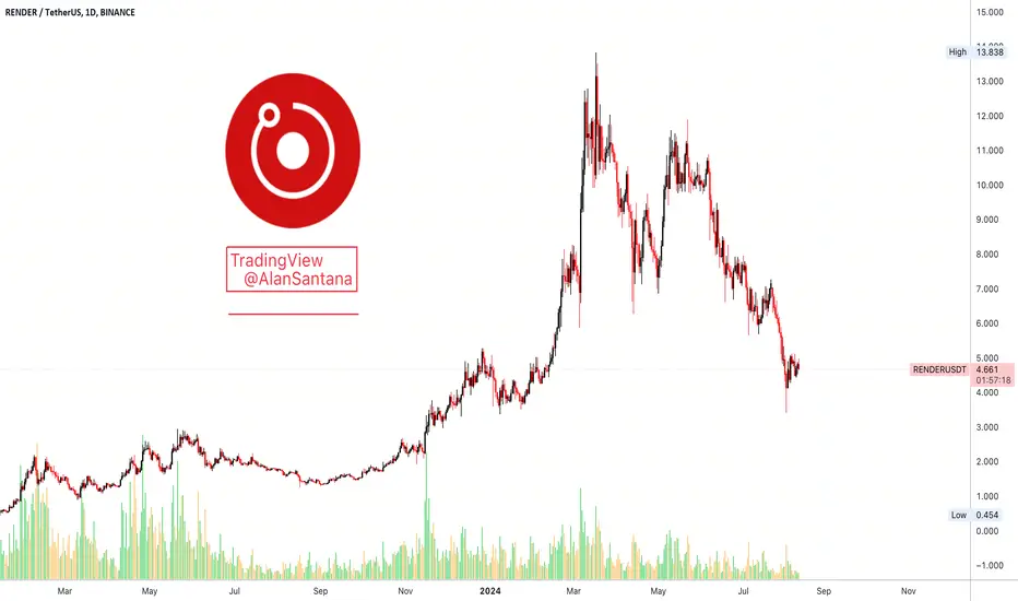 Render Token Grew by 1,000% since August 2023 through mid-March 2024; an amazing bullish wave.