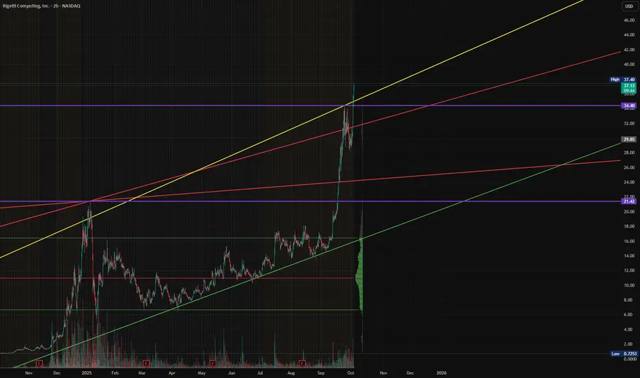 RGTI has been on a run, pushing from $0.72 to $21.42 going into 2025, consolidating and pushing into this continuation over the course of the remaining, breaking above that $21.42 Level of Resistance, now identifying resistance $34.40, where we will be looking for new strong support above those levels before pushing on to the $43 PT.