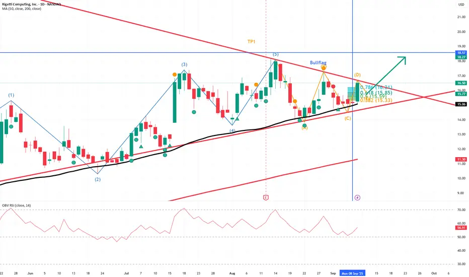 About to finish the ABCDE Correction phase with probable outbreak upwards of the triangle. First target around 18,5