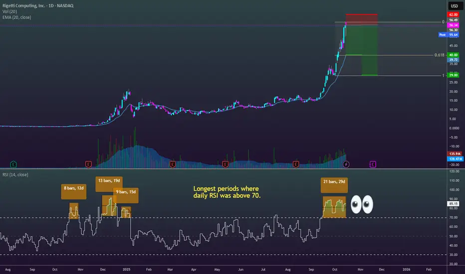 I'm seeing Q3 earnings as a bubble pop opportunity (early November). Daily RSI needs to be reset going on its longest streak right now above 70. PT of ~$40 would be a near term target to hit before earnings; ~$29 post earnings is possible on a big miss and guidance disappointment or general lack of excitement to maintain the currently lofty valuation.