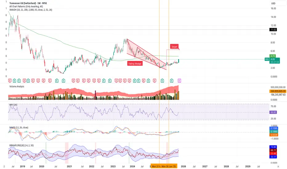 $RIG approaching 200W moving average