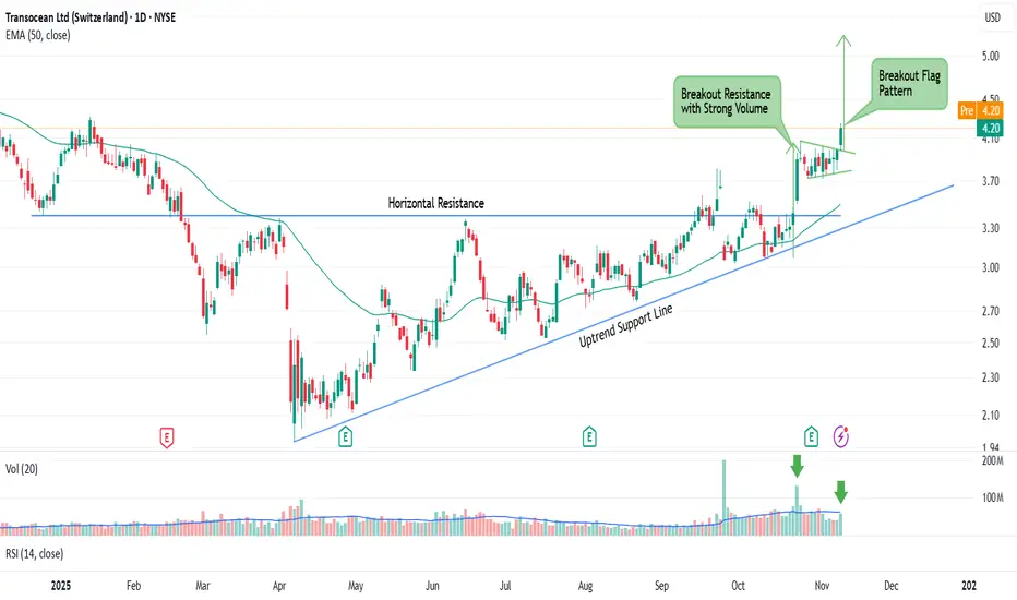 RIG has broken out of long consolidation and strong resistance at 3.40 with high volume, showing strong buyer interest.