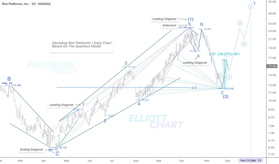 As anticipated in prior updates, RIOT completed a 50% retracement of the rising Leading Diagonal as Intermediate Wave (1), potentially marking the extreme low of Intermediate Wave (2).