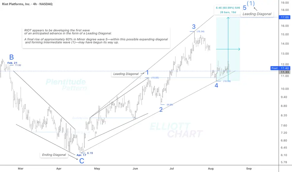 📉🎬 >> Upon completion of Minor Wave 5, the leading diagonal pattern would likely be confirmed with high confidence, setting the stage for an Intermediate-degree corrective retracement in Wave (2).