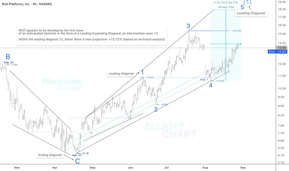 📈🎬 In line with the bullish scenario, the structure is progressing step by step toward completing the projected initial leg of a Primary-degree uptrend. A surge above 15.34 would technically validate the Leading Diagonal in Intermediate Wave (1) as a completed structure, potentially confirming the onset of a broader bullish trend. Based on current technical analysis, the projected advance for Minor Wave 5 stands at approximately 72%.