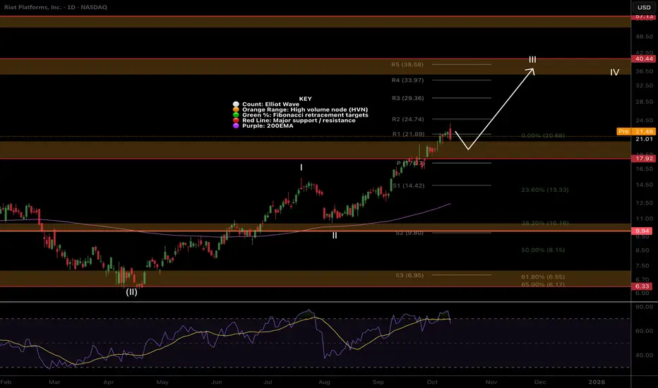 Wave II is underway and the next target is $40 High Volume Node resistance and the R5 daily pivot.