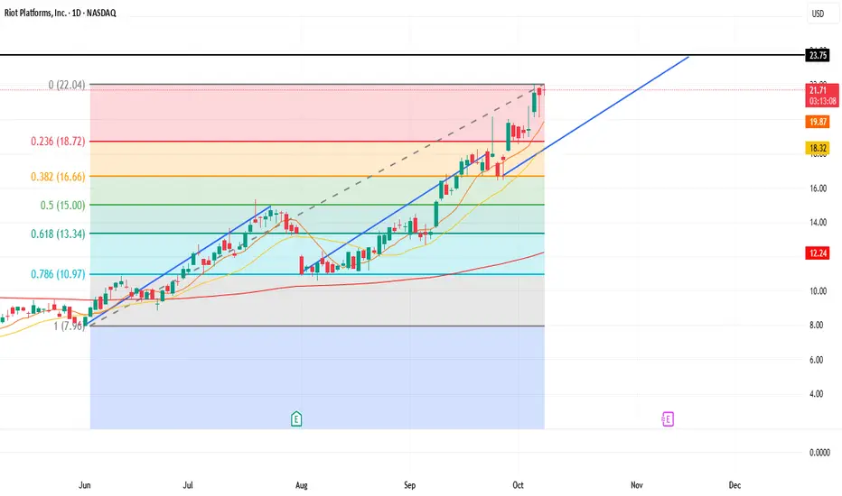 With the help of support demand indicator, I overlayed Riot with fibonacci retracement.