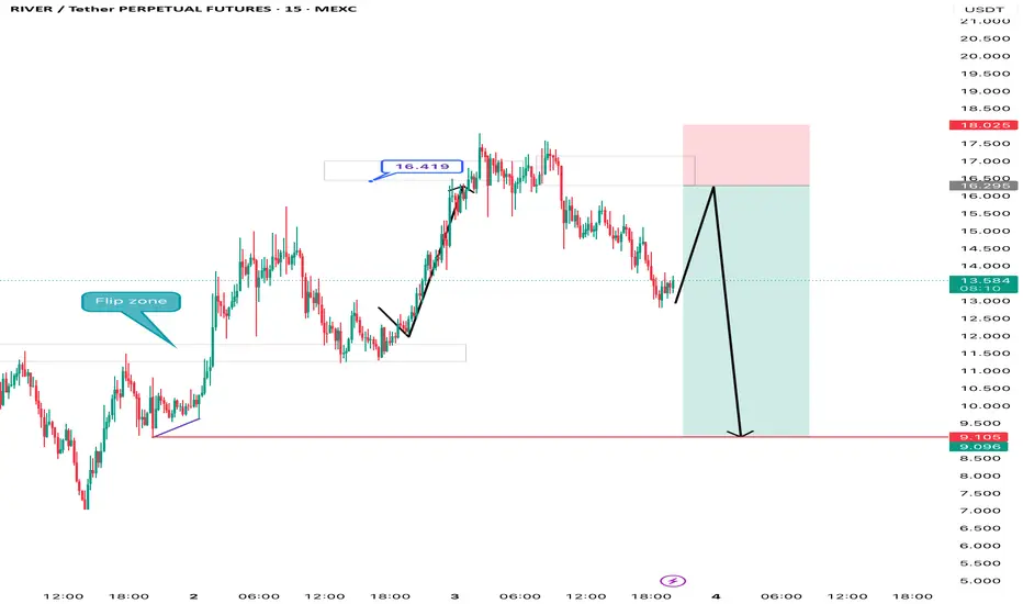 This is so funny. After hitting the previous target around 16, it eventually changed its momentum to seek liquidity. I see the price coming back to where it pumped. If you look closely it would be around 9 zone. This is so risky to enter since the price just got out of the flip zone 😂