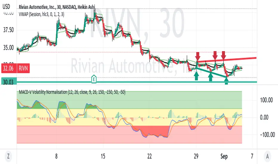 Based on pivots in June and July, the horizontal support is at ~ $30.