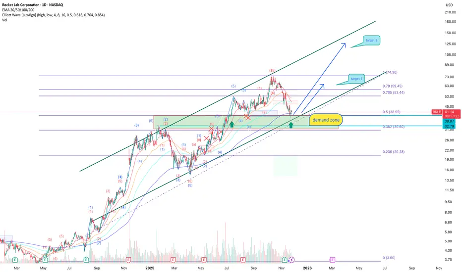 Rocket Lab remains one of the strongest long-term stories in the small-launch sector. The company continues expanding production capacity, scaling its launch cadence, securing new government contracts, and increasing recurring revenue from satellite services. The global demand for small-satellite deployment is growing faster than supply, and RKLB is steadily becoming the second major player after SpaceX in the commercial-launch and orbital-services niche. Additional growth in spacecraft manufacturing and analytics strengthens the company’s strategic positioning. From a long-term fundamental perspective, the recent price decline looks more like a technical correction inside a broader bullish cycle, rather than a structural reversal. For mid- and long-term investors, this area historically acts as a key accumulation zone -especially when fundamentals align with major technical supports.