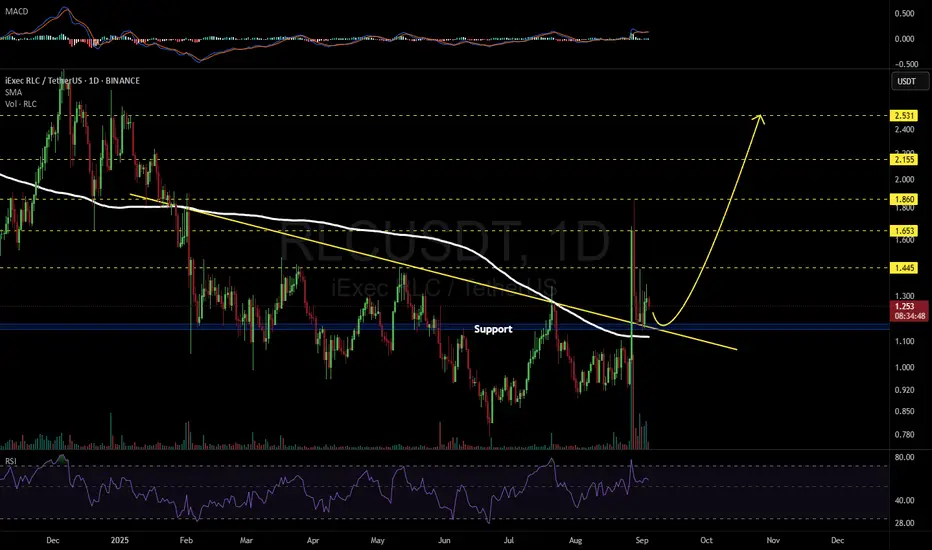 #RLC, after its strong rally, is still in a corrective phase and is expected to retest the descending support line. In case of a successful bounce, the potential targets are: