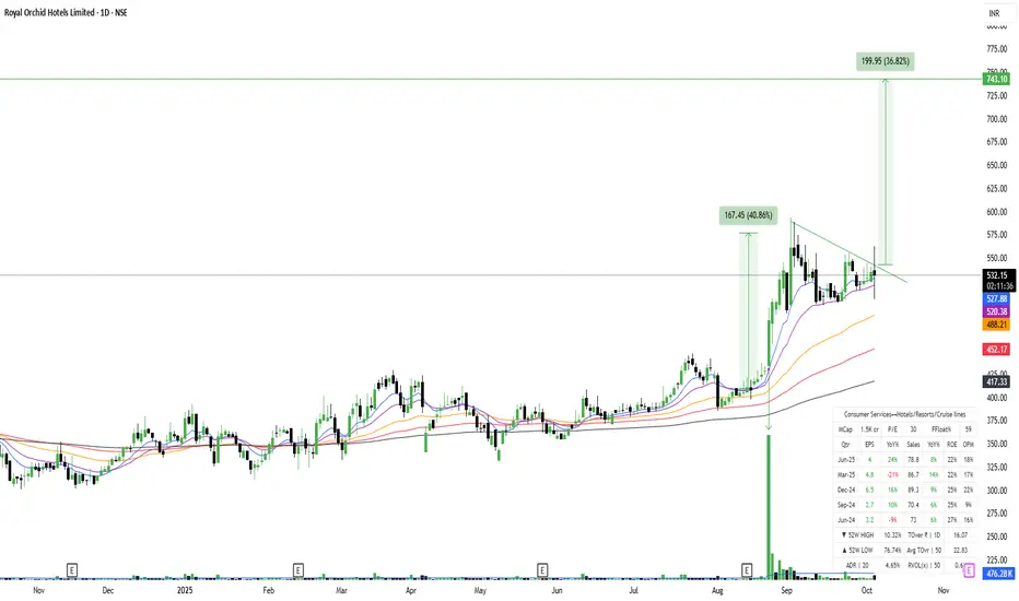 The hospitality sector has shown strong tailwinds lately, and Royal Orchid’s structure aligns perfectly with the sectoral momentum.