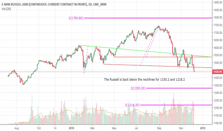 The Russell is back below the necklines for 1330.2 and 1218.2